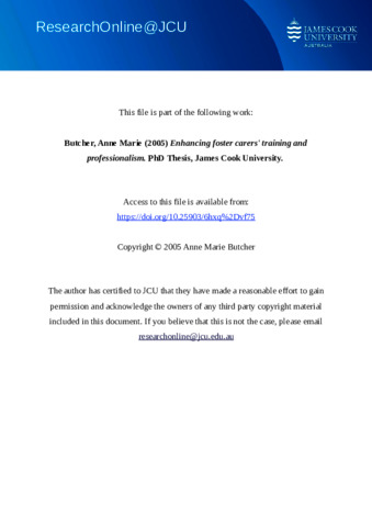 Butcher, Anne Marie (2005) Enhancing foster carers' training and professionalism. PhD thesis, James Cook University.