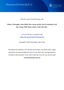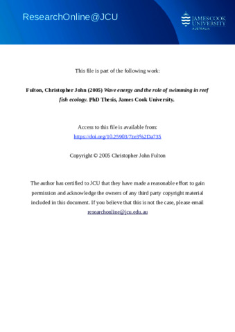 Fulton, Christopher John (2005) Wave energy and the role of swimming in reef fish ecology. PhD thesis, James Cook University.