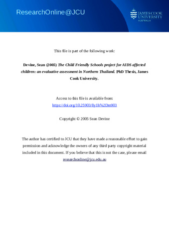 Devine, Sean (2005) The Child Friendly Schools project for AIDS affected children: an evaluative assessment in Northern Thailand. PhD thesis, James Cook University.
