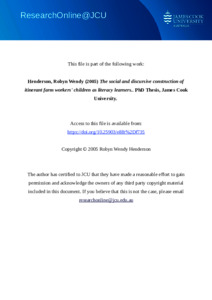 Henderson, Robyn Wendy (2005) The social and discursive construction of itinerant farm workers' children as literacy learners. PhD thesis, James Cook University.