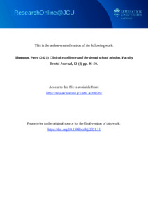 Thomson, Peter (2021) Clinical excellence and the dental school mission. Faculty Dental Journal, 12 (1). pp. 46-50.