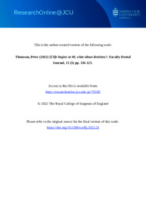 Thomson, Peter (2022) If life begins at 40, what about dentistry? Faculty Dental Journal, 13 (3). pp. 116-121.