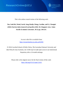 Tan, Sook Rei, Wood, Jacob, Jang, Haejin, Wong, Caroline, and Li, Changtai (2024) Tourism-induced growth and quality of life: the Singapore story. Asian-Pacific Economic Literature, 38 (1). pp. 204-224.