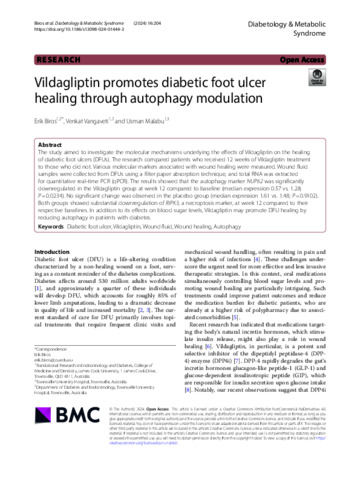 Biros, Erik, Vangaveti, Venkat, and Malabu, Usman (2024) Vildagliptin promotes diabetic foot ulcer healing through autophagy modulation. Diabetology & Metabolic Syndrome, 16. 204.