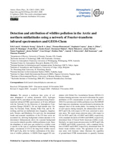 Lutsch, Erik, Strong, Kimberly, Jones, Dylan B.A., Blumenstock, Thomas, Conway, Stephanie, Fisher, Jenny A., Hannigan, James W., Hase, Frank, Kasai, Yasuko, Mahieu, Emmanuel, Makarova, Maria, Morino, Isamu, Nagahama, Tomoo, Notholt, Justus, Ortega, Ivan, Palm, Mathias, Poberovskii, Anatoly V., Sussmann, Ralf, and Warneke, Thorsten (2020) Detection and attribution of wildfire pollution in the Arctic and northern midlatitudes using a network of Fourier-Transform infrared spectrometers and GEOS-Chem. Atmospheric Chemistry and Physics, 20 (21). pp. 12813-12851.