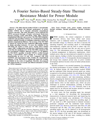 Ma, Haohao, Yang, Yuan, Fan, Zeyang, Huang, Tao, Xiang, Wei, Wen, Yang, and Cobreces, Santiago (2024) A Fourier Series-Based Steady-State Thermal Resistance Model for Power Module. IEEE Journal of Emerging and Selected Topics in Power Electronics, 12 (4). pp. 3912-3924.