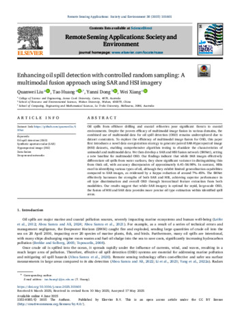 Liu, Quanwei, Huang, Tao, Dong, Yanni, and Xiang, Wei (2025) Enhancing oil spill detection with controlled random sampling: A multimodal fusion approach using SAR and HSI imagery. Remote Sensing Applications: Society and Environment, 38. 101601.