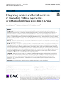 Integrating modern and herbal medicines in controlling malaria: experiences of orthodox healthcare providers in Ghana
