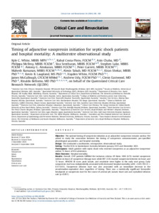 White, Kyle C., Costa-Pinto, Rahul, Chaba, Anis, McIlroy, Philippa, Senthuran, Siva, Luke, Stephen, Attokaran, Antony G., Garrett, Peter, Ramanan, Mahesh, Tabah, Alexis, Shekar, Kiran, Laupland, Kevin B., White, Hayden, Mccullough, James, Udy, Andrew, Eastwood, Glenn, and Bellomo, Rinaldo (2024) Timing of adjunctive vasopressin initiation for septic shock patients and hospital mortality: A multicentre observational study. Critical Care and Resuscitation, 26 (4). pp. 295-302.