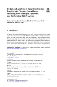 This chapter is divided into three major sections: surveillance (Sect. 1), modeling (Sect. 2), and risk analyses (Sect. 3). Section 1 is designed to provide practical guidance on how to set up, collect, analyze, and interpret basic data that can be collected during pathogen surveillance in field or captive settings. We also discuss the economics of surveillance. Section 2 introduces typical models used to model pathogen transmission and methods used to estimate invasion potential, R0. Section 3 focuses on strategies that can be used to estimate the risk of ranavirus invading into a novel area. While detail is provided in these sections, our intent is not to discuss all surveillance, modeling, or risk analysis scenarios. If readers need additional guidance, we welcome you to reach out to the chapter authors or authors of the papers and books we cite.