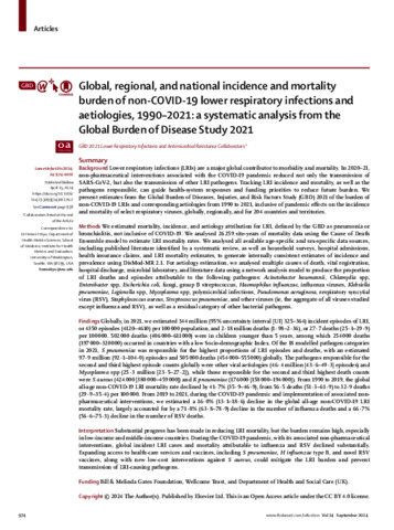 Global, regional, and national incidence and mortality burden of non-COVID-19 lower respiratory infections and aetiologies, 1990–2021: a systematic analysis from the Global Burden of Disease Study 2021