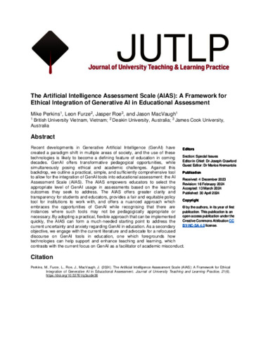 Perkins, Mike, Furze, Leon, Roe, Jasper, and Macvaugh, Jason (2024) The Artificial Intelligence Assessment Scale (AIAS): A Framework for Ethical Integration of Generative AI in Educational Assessment. Journal of University Teaching and Learning Practice, 21 (6).