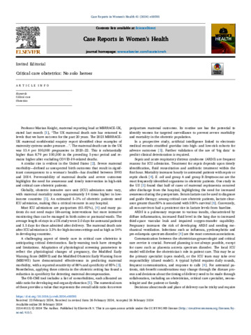 Tucker, Danny, and Freestun, Melissa (2024) Critical care obstetrics: No solo heroes. Case Reports in Women's Health, 41. e00591.