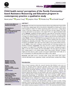 Child health nurses’ perceptions of the Family Community-based Assistance Resourcing and Education program in contemporary practice: a qualitative study