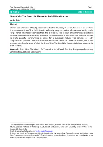 Pulla, Venkat (2024) 'Buen Vivir': The Good Life Theme for Social Work Practice. Space and Culture, India, 11 (4).