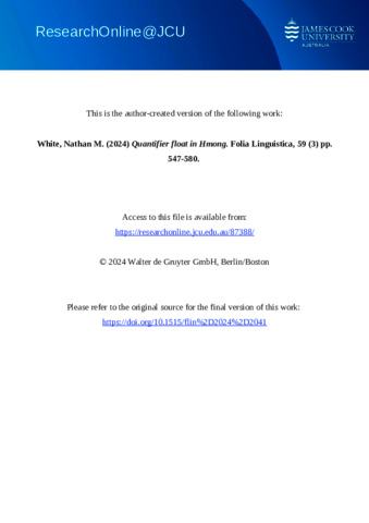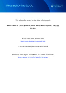 White, Nathan M. (2024) Quantifier float in Hmong. Folia Linguistica, 59 (3). pp. 547-580.