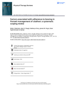 Paterson, Kelly J., Clough, Alan R., Farry, Katheryn, Virgin, James W., Taylor, Sean, and Barker, Ruth N. (2024) Factors associated with adherence to bracing in Ponseti management of clubfoot: a systematic scoping review. Physical Therapy Reviews, 29 (4). pp. 134-152.