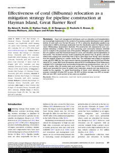 Effectiveness of coral (Bilbunna) relocation as a mitigation strategy for pipeline construction at Hayman Island, Great Barrier Reef