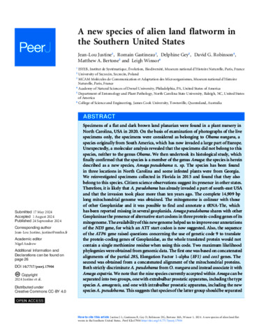 Justine, Jean Lou, Gastineau, Romain, Gey, Delphine, Robinson, David G., Bertone, Matthew A., and Winsor, Leigh (2024) A new species of alien land flatworm in the Southern United States. PeerJ, 12 (9). e17904.
