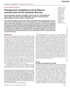Brownstein, Chase D., Harrington, Richard C., Alencar, Laura R.V., Bellwood, David R., Choat, John H., Rocha, Luiz A., Wainwright, Peter C., Tavera, Jose, Burress, Edward D., Muñoz, Martha M., Cowman, Peter F., and Near, Thomas J. (2025) Phylogenomics establishes an Early Miocene reconstruction of reef vertebrate diversity. Science Advances, 11 (19). eadu6149.