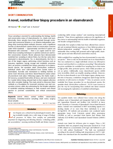 Hasenei, A. M., Foyle, L., and Rummer, J. L. (2025) A novel, nonlethal liver biopsy procedure in an elasmobranch. Australian Veterinary Journal, 103 (7). pp. 407-410.