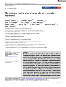 Debaere, Shamil F., Weideli, Ornella C., Daly, Ryan, Milanesi, Elena M.C., Trujillo, José E., Bouyoucos, Ian A., Mourier, Johann, Chin, Andrew, Planes, Serge, De Boeck, Gudrun, and Rummer, Jodie L. (2025) The costs and healing rates of minor injuries in neonatal reef sharks. Journal of Fish Biology, 106 (6). pp. 1777-1788.