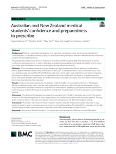 Mokrzecki, Sophie, Perks, Stephen, Pain, Tilley, Sen Gupta, Tarun, and Mallett, Andrew J. (2025) Australian and New Zealand medical students’ confidence and preparedness to prescribe. BMC Medical Education, 25 (1). 536.