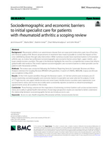Sociodemographic and economic barriers to initial specialist care for patients with rheumatoid arthritis: a scoping review