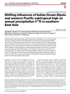 Shifting influences of Indian Ocean Dipole and western Pacific subtropical high on annual precipitation δ18O in southern East Asia