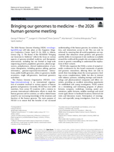 The 2026 Human Genome Meeting (HGM; www.hugo-hgm2026.org) will take place at the Zappeion Megaron Conference Center, April 21–24, 2026 in Athens, Greece (Fig. 1). The theme of the HGM2026 “Bringing our Genomes to Medicine” reflects the focus on various aspects of genome-stratified medicine and therapeutic interventions, including but not limited to large-scale sequencing projects, population genomics, pharmacogenomics, polypharmacy, clinical implementation of precision therapeutics, including genome editing, genome informatics, genome-exposome/microbiome interactions, public health genomics, ethics in genomics, health economics, single cell-genomics, functional genomics and others.
