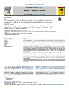 The association between dietary exposures and anxiety symptoms: A prospective analysis of the Australian Longitudinal Study on Women's Health cohort