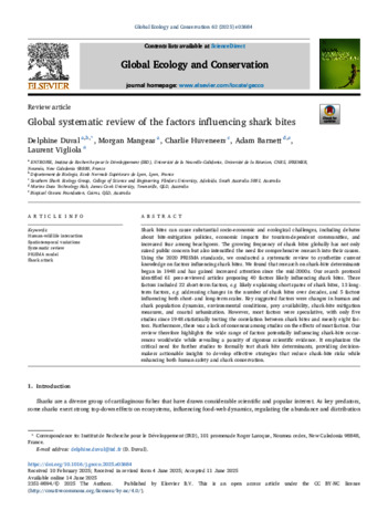 Duval, Delphine, Mangeas, Morgan, Huveneers, Charlie, Barnett, Adam, and Vigliola, Laurent (2025) Global systematic review of the factors influencing shark bites. Global Ecology and Conservation, 62. e03684.