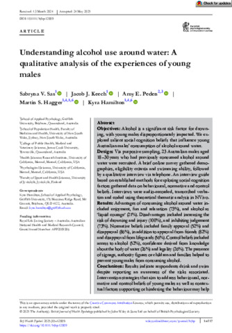 Sas, Sabryna V., Keech, Jacob J., Peden, Amy E., Hagger, Martin S., and Hamilton, Kyra (2025) Understanding alcohol use around water: A qualitative analysis of the experiences of young males. British Journal of Health Psychology, 30 (3). e12809.