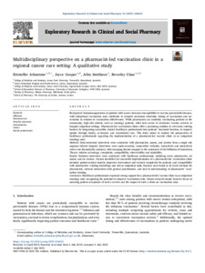 Johnstone, Kristoffer, Cooper, Joyce, Smithson, John, and Glass, Beverley (2025) Multidisciplinary perspective on a pharmacist-led vaccination clinic in a regional cancer care setting: A qualitative study. Exploratory Research in Clinical and Social Pharmacy, 19. 100633.