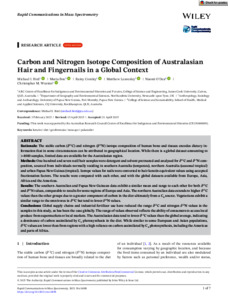 Bird, Michael I, Box, Maria, Comley, Rainy, Leavesley, Matthew, O'Dea, Naomi, and Wurster, Christopher M (2025) Carbon and Nitrogen Isotope Composition of Australasian Hair and Fingernails in a Global Context. Rapid Communications in Mass Spectrometry, 39 (15). e10058.
