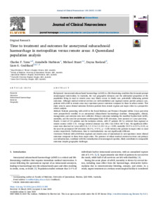 Time to treatment and outcomes for aneurysmal subarachnoid haemorrhage in metropolitan versus remote areas: A Queensland population analysis