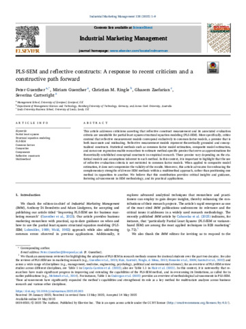 Guenther, Peter, Guenther, Miriam, Ringle, Christian M., Zaefarian, Ghasem, and Cartwright, Severina (2025) PLS-SEM and reflective constructs: A response to recent criticism and a constructive path forward. Industrial Marketing Management, 128. pp. 1-9.