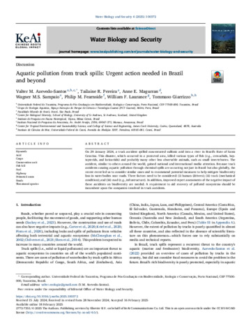 Azevedo-Santos, Valter M., Pereira, Tailaine R., Magurran, Anne E., Sampaio, Wagner M.S., Fearnside, Philip M., Laurance, William F., and Giarrizzo, Tommaso (2025) Aquatic pollution from truck spills: Urgent action needed in Brazil and beyond. Water Biology and Security, 4 (3). 100372.