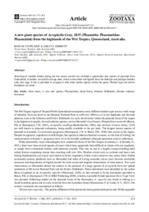 A new giant species of Acrophylla Gray, 1835 (Phasmida: Phasmatidae: Phasmatini) from the highlands of the Wet Tropics, Queensland, Australia.