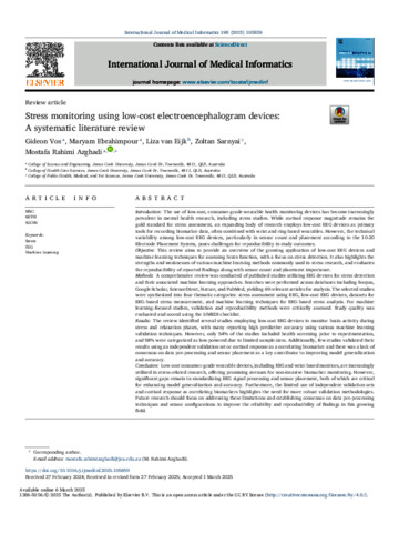Vos, Gideon, Ebrahimpour, Maryam, van Eijk, Liza, Sarnyai, Zoltan, and Rahimi Azghadi, Mostafa (2025) Stress monitoring using low-cost electroencephalogram devices: A systematic literature review. International Journal of Medical Informatics, 198. 105859.
