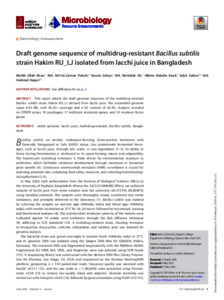 Draft genome sequence of multidrug-resistant Bacillus subtilis strain Hakim RU_LJ isolated from lacchi juice in Bangladesh