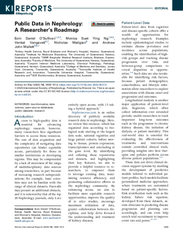 O'Sullivan, Eoin Daniel, Ng, Monica Suet Ying, Vangaveti, Venkat, Matigian, Nicholas, and Mallett, Andrew John (2025) Public Data in Nephrology: A Researcher's Roadmap. Kidney International Reports, 10 (6). pp. 1609-1612.