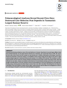 Adeleye, Matthew Adesanya, Haberle, Simon Graeme, Hua, Quan, and Bowman, David M.J.S. (2025) Palaeoecological Analyses Reveal Recent Fires Have Destroyed Late-Holocene Peat Deposits in Tasmania's Largest Ramsar Reserve. Austral Ecology, 50 (6). e70087.