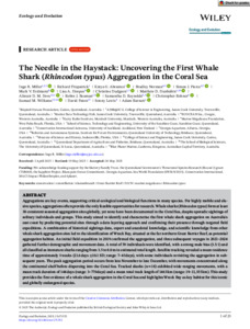 Miller, Ingo B., Fitzpatrick, Richard, Abrantes, Kátya G., Norman, Bradley, Pierce, Simon J., Erdmann, Mark V., Hoopes, Lisa A., Dudgeon, Christine, Dunbabin, Matthew D., Dove, Alistair D.M., Beaman, Robin J., Reynolds, Samantha D., Rohner, Christopher, Williams, Samuel M., Paton, David, Lewis, Sonny, and Barnett, Adam (2025) The Needle in the Haystack: Uncovering the First Whale Shark (Rhincodon typus) Aggregation in the Coral Sea. Ecology and Evolution, 15 (6). e71552.