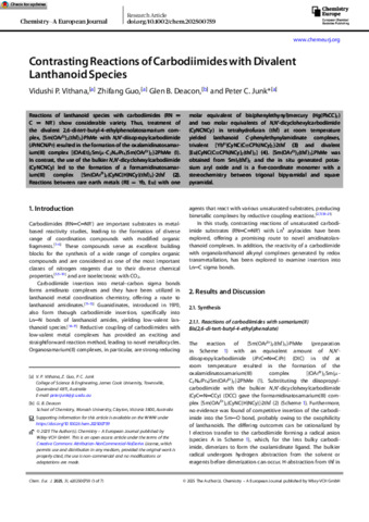 Vithana, Vidushi P., Guo, Zhifang, Deacon, Glen B., and Junk, Peter C. (2025) Contrasting Reactions of Carbodiimides with Divalent Lanthanoid Species. Chemistry A European Journal, 31 (28). e202500759.