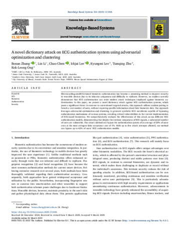 Zhang, Bonan, Li, Lin, Chen, Chao, Lee, Ickjai, Lee, Kyungmi, Zhu, Tianqing, and Ong, Kok Leong (2025) A novel dictionary attack on ECG authentication system using adversarial optimization and clustering. Knowledge Based Systems, 316. 113326.