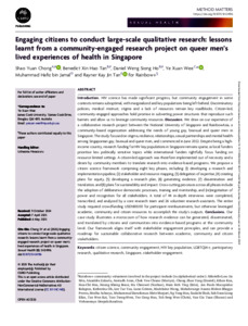Engaging citizens to conduct large-scale qualitative research: lessons learnt from a community-engaged research project on queer men's lived experiences of health in Singapore