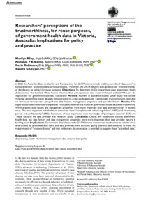 Researchers’ perceptions of the trustworthiness, for reuse purposes, of government health data in Victoria, Australia: Implications for policy and practice