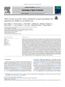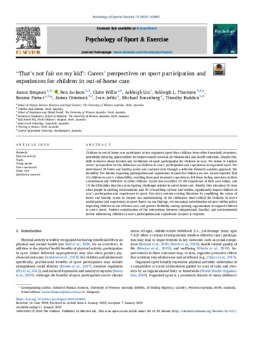 Simpson, Aaron, Jackson, Ben, Willis, Claire, Lin, Ashleigh, Thornton, Ashleigh L., Furzer, Bonnie, Dimmock, James, Jeftic, Ivan, Rosenberg, Michael, and Budden, Timothy (2025) “That's not fair on my kid”: Carers' perspectives on sport participation and experiences for children in out-of-home care. Psychology of Sport and Exercise, 78. 102802.
