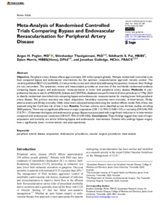 Pegler, Angus H., Thanigaimani, Shivshankar, Pai, Siddharth S., Morris, Dylan, and Golledge, Jonathan (2025) Meta-Analysis of Randomised Controlled Trials Comparing Bypass and Endovascular Revascularisation for Peripheral Artery Disease. Vascular and Endovascular Surgery, 59 (3). pp. 277-287.
